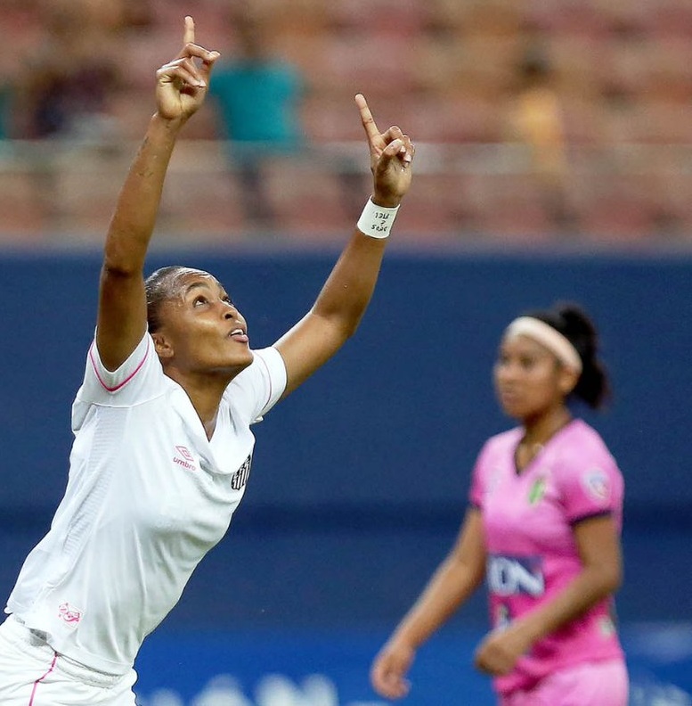 Às 20h30 foi a vez do Santos aplicar uma goleada na Arena. A equipe brasileira quase não sofreu no jogo. Logo aos 16min do primeiro tempo, Juliete recebe a bola e toca na saída da goleira boliviana, que abriu a “porteira”. 6 min depois, a mesma Juliete, avança em velocidade pela esquerda e cruza na medida para Alanha apenas empurrar para o gol, 2x0 Santos. Nos acréscimos, as sereias da vila fizeram o terceiro com uma cavadinha da Maria, golaço. No segundo tempo, o Santos voltou a pressionar o Deportivo Ita, que só assistia as brasileiras jogarem. Aos 24 min da etapa final, Brena faz o 4, e logo depois, ela mesma faz o quinto, dois minutos depois. E pra fechar, aos 40 min, mais um gol, Camila chega na área para fazer 6x0 em cima das bolivianas. As sereias da vila já estão classificadas para as semifinais após essa goleada, que foi a primeira da competição.